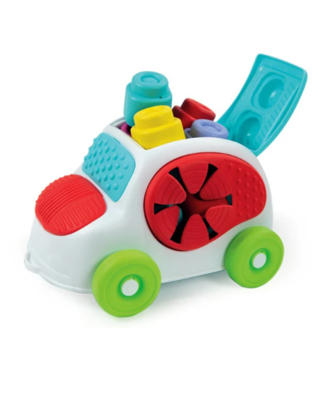 Avto vsebuje mehke Clemmy kocke, ki jih lahko otrok vstavi v odprtine na vozilu ali z njimi gradi in ustvarja. Različne teksture in barve spodbujajo senzorični razvoj, medtem ko sestavljanje kock pomaga pri razvoju fine motorike in koordinacije.