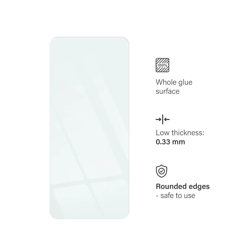Visokokakovostno kaljeno steklo s trdoto 9H ščiti zaslon pred poškodbami zaradi ostrih predmetov, kot so ključi ali kovanci. Ultra tanka zasnova omogoča naraven občutek pri uporabi telefona, oleofobna prevleka pa zmanjšuje nastajanje prstnih odtisov in olajša čiščenje zaslona. Steklo se popolnoma prilega zaslonu in omogoča hitro ter enostavno namestitev brez zračnih mehurčkov.
