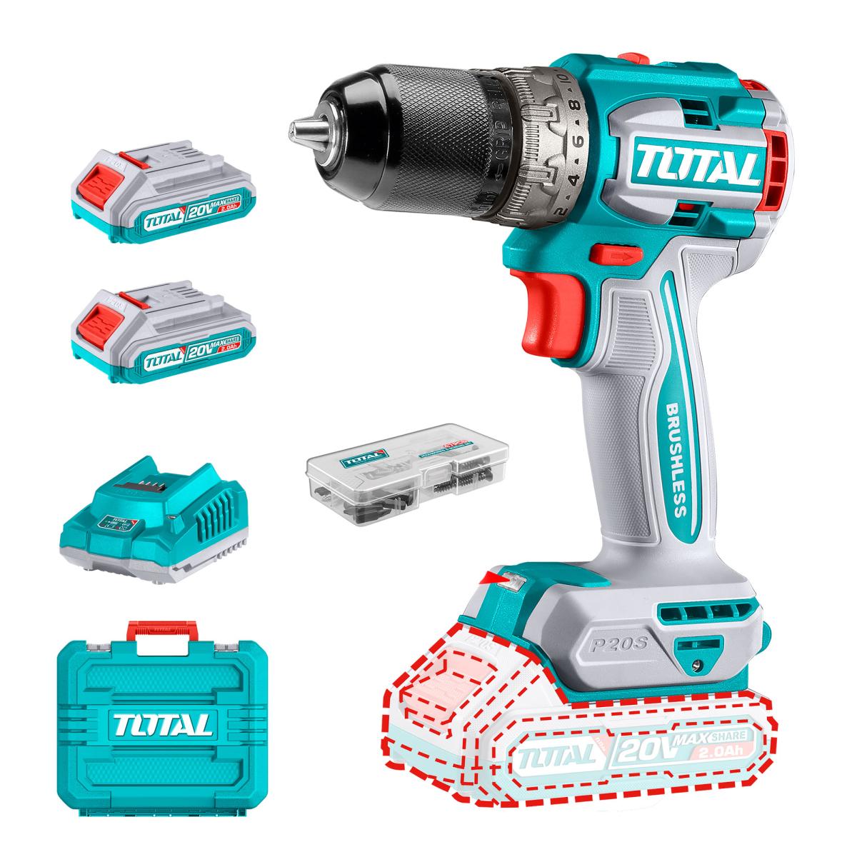 Kompaktni brezkrtačni akumulatorski vrtalnik 2000prm/60Nm/P20S/ INDUSTRIAL (SET Baterija 2x2Ah, Polnilec, Kovček) (TDLI20602E)
