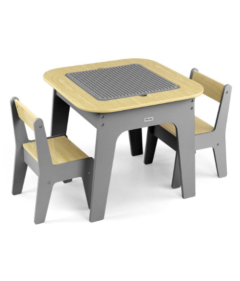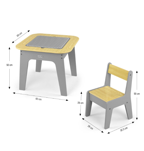 Ustvari udoben in stilski kotiček za igro, risanje in ustvarjanje za najmlajše z kompletom Olaf Blocks, ki vključuje mizo in dva stolčka v elegantni temno sivi barvi. Komplet pohištva je zasnovan za otroke v predšolskem in zgodnjem šolskem obdobju ter združuje funkcionalnost, varnost in moder dizajn.